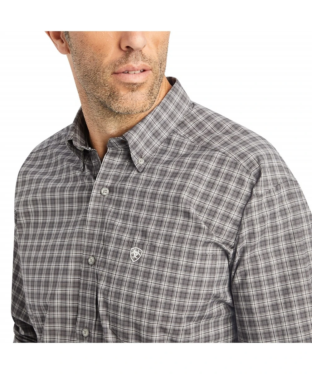 85% Cotton/13% Recycled Polyester/2% Spandex; Classic Fit With Extra Length For Tucking; Long Sleeve; Greater Arm Mobility For Freedom Of Movement; Button Down Collar; Taped Placket And Back Neck Seam; Button Down Placket; Breathable Mesh Back Yoke; Performance Stretch Fabrication; Color: Black Plaid; Style #10042277