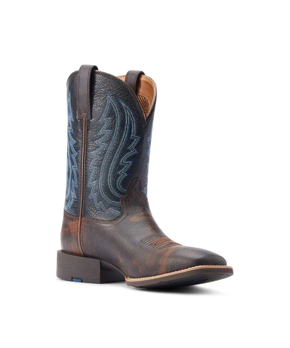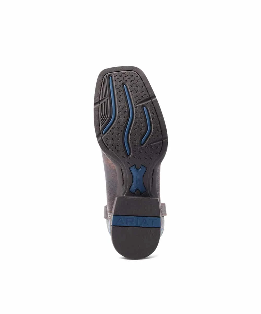 100% Leather; Leather Lining; Full-Grain Leather Foot And Upper; Color: Tortuga Foot And Black Upper With Blue Stitching; 11″ Upper; Heel: 1.5″ Horseman; Square Toe; Removable Pro Performance Insole For Cushioning And Shock Absorption; Duratread Sole; 6 Row Stitching; Style #10044562