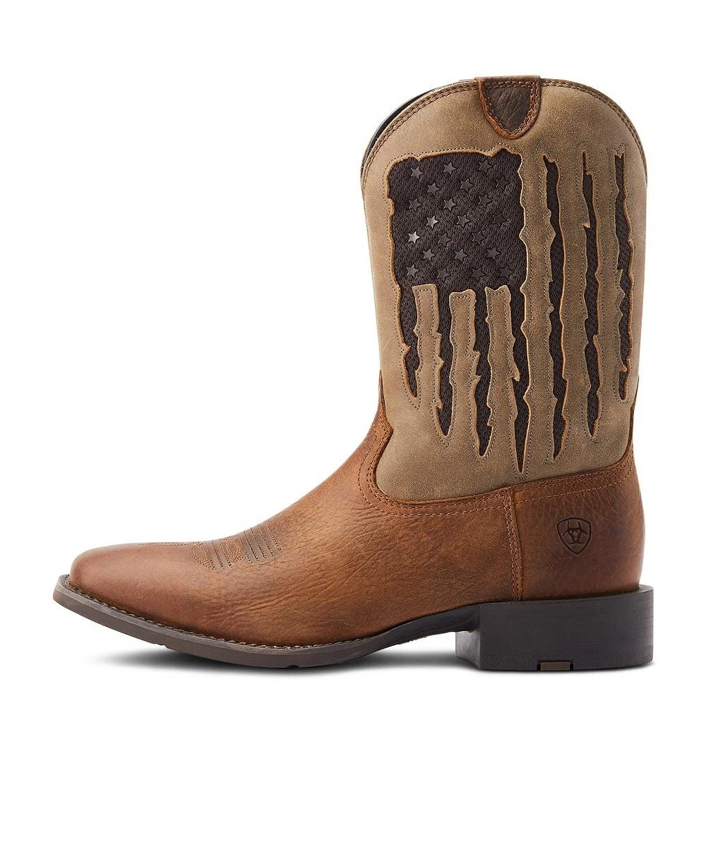 11″ Upper Height; Full Grain Leather; Vented Mesh Underlays; Removable Pro Performance Insole For Cushioning And Shock Absorption; VentTEK Mesh Panels Enable Air Flow To Keep You Cool And Comfortable; Double Stitch Welt Construction; Duratread Sole Is Extremely Durable While Still Allowing Your Foot To Flex; ATS Technology Provides Ergonomic Support; 1.5″ Roper Heel; Wide Square Toe; Vertical Flag With Star Embellishments; Color: Faithful Brown; Style #10044564