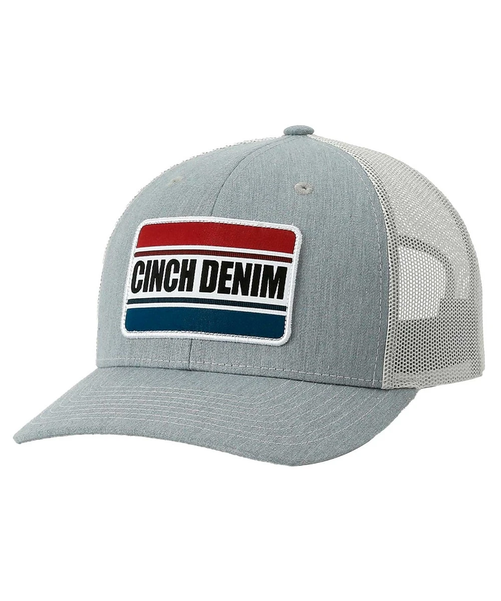 Six Panel Construction; Gray Front Crown And Bill; White Mesh Back; Cinch Denim Patch On Front Center Crown; Curved Bill; Snap Back Closure; Style #MCC0800001