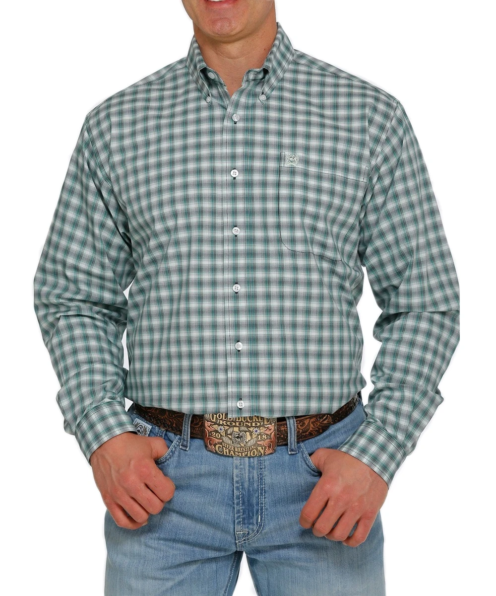 100% Cotton; Long Sleeve; Button Down Collar, Front And Cuffs; White Buttons; Open Left Front Pocket With White Embroidered Logo; Green And White Plaid; Style #MTW1105412
