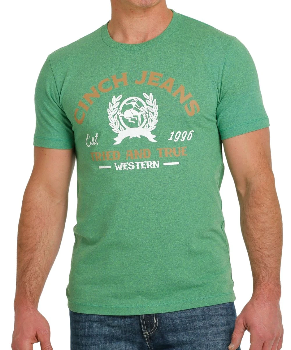 Cotton/Poly; Short Sleeve; Crew Neck; Front Logo Screen Print; Color: Heather Green; Style #MTT1690558