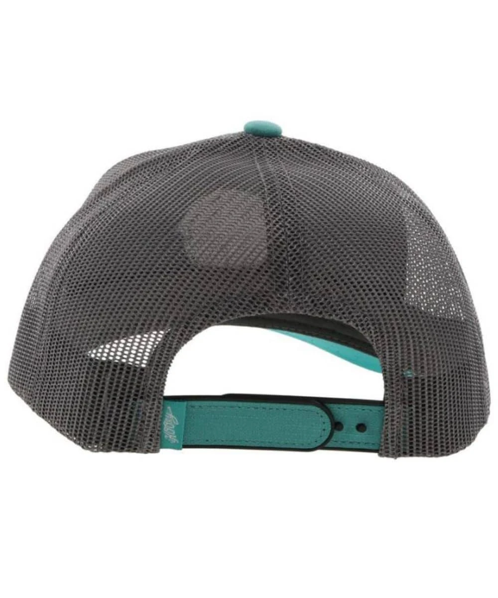 6 Panel Construction; Teal Front Panels And Brim; Gray Rubber Patch With Hooey Logo Front And Center; Gray Mesh Back Panels; Snap Back Closure; Mid-Profile; Curved Bill; Style #2205T-TLGY