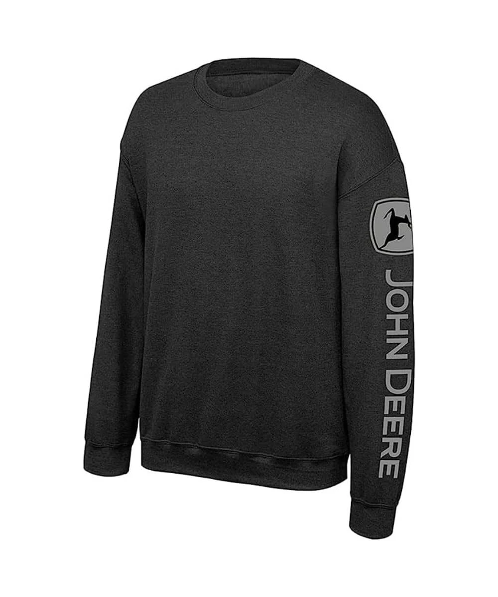 100% Cotton; Fleece Material; Color: Heather Black; Charcoal Gray John Deere Logo And “John Deere” On Left Sleeve; Rib Knit Cuffs And Waist Band; Made In The USA; Style #JM21-02X7-JDR-D0R