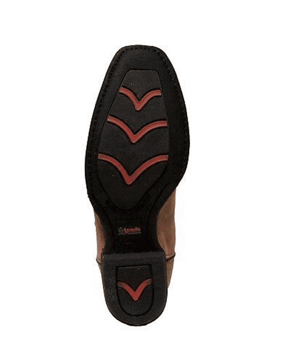 Distressed Leather; 12″ Shaft; Cushioned insole; Pull Straps; Number 7 Toe; Cowboy Heel; Redline Three Rubber Outsole; Style #68442