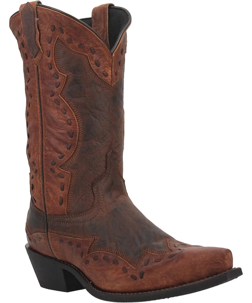 Full Grain Leather; 12″ Height; Pull Tabs; Accent Buck Stitch Detail Throughout; Cushion Comfort Insole; Laredo Flex Rubber Outsole; Snip Toe; Cowboy Heel; Color: Rust; Style #68471
