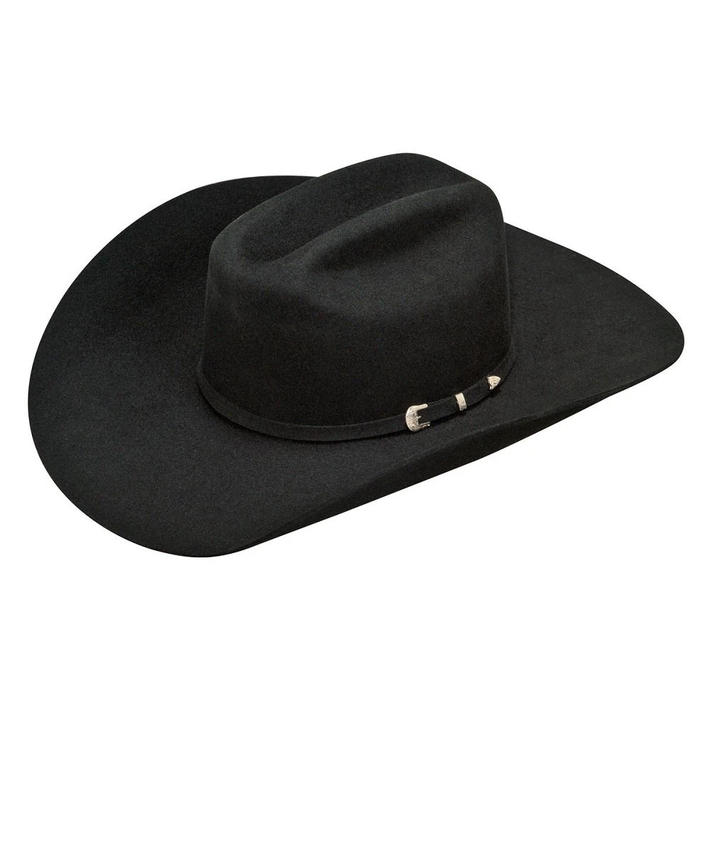 2X Wool; 4 1/4″ Hand-Creased Brim; 4 1/4″ Cattleman Crown; Leather Sweatband; Classic Three Piece Buckle Set Hatband; Style #A7520001