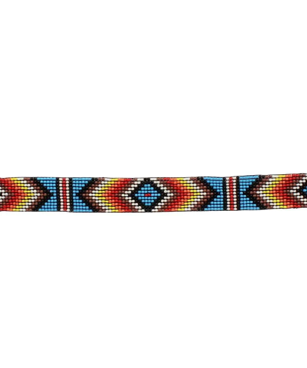 Beaded With Navajo Design; Colors: Pearl White, Turquoise, Red, Coral, Yellow, Brown, Black; 13/16″ Wide; 20″ Diameter; Elastic Band; Style #0273497