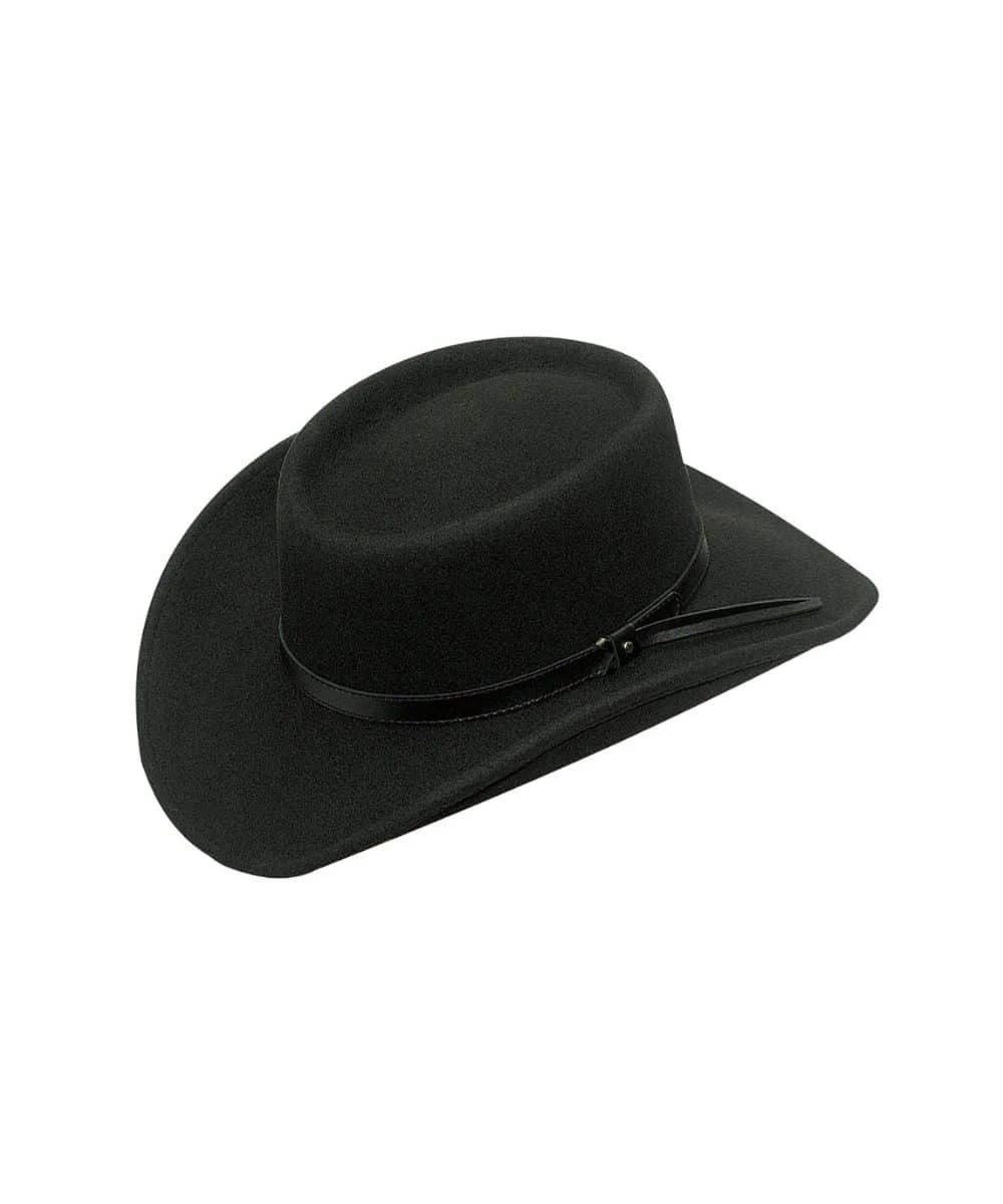 Wool; Color: Black; Gambler Style; Crown: 3-3/4″; Brim: 3-1/2″; Ribbon Hatband; Crushable; Style #7211801