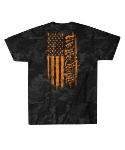 50% Cotton/ 50% Polyester; Color: Charcoal; Design Is A Flag With 3 Cowboys On Front And Back; Crew Neck; Short Sleeves; Style #CB-1597
