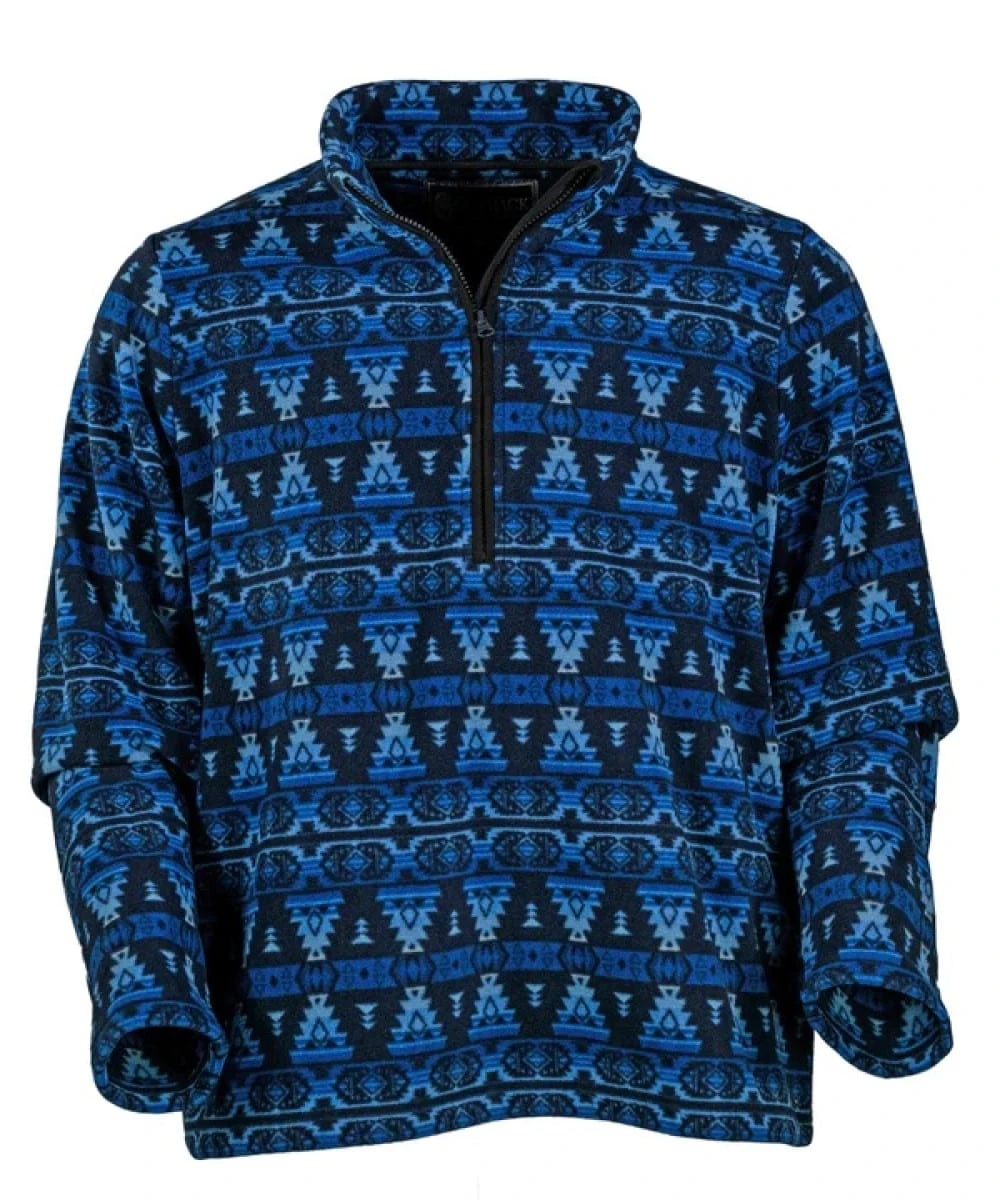 Fleece/Polyester; Long Sleeve; Mandarin Collar; 1/4 Zip; Aztec Patterned Sherpa; Micro-Suede Accent; Color: Blue; Style #48734