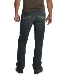 Cotton Spandex Blend Construction; Reflex Stretch Denim; Whiskers; Fading; Five Pocket Styling; White Accent Stitching; Embroidered Small ‘V’ Fashion Back Pockets; Straight Leg; Style #RRMD0SRZST