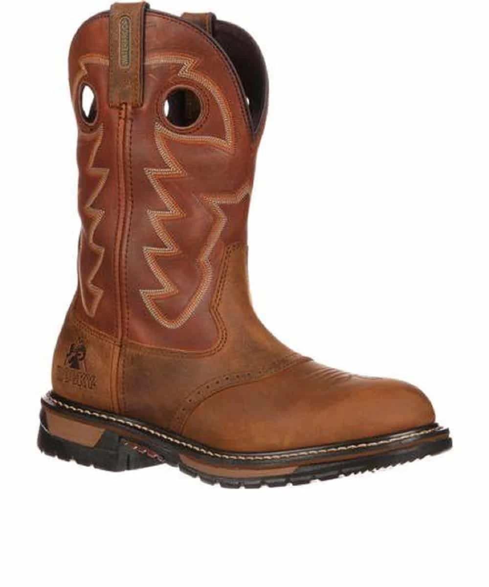 11″ Boot; Guaranteed Rocky Waterproof Construction; 8-Layer Rocky Ride Comfort System; Removable Dual Density Polyurethane Footbed; Heel Stabilizer For Added Comfort And Stability; Tempered Steel Shank; Durable Welt Construction; Round Toe; Oil, Heat And Abrasion Resistant Rubber Sole; Style #2775
