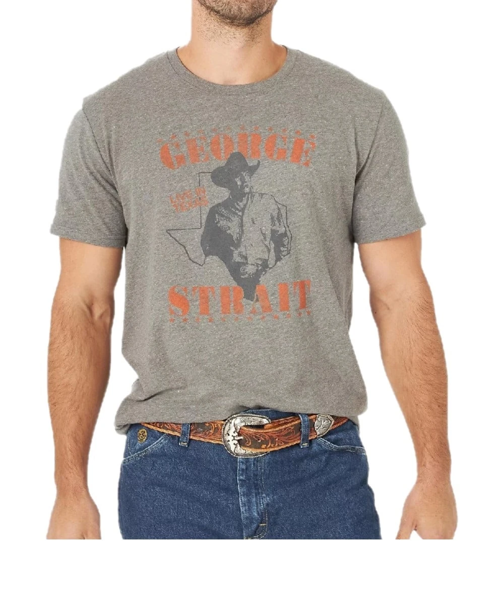 50% Cotton/50% Polyester; Regular Fit; Short Sleeve; Crew Neck; George Strait “Live In Texas” Screen Printed Design On Chest; Color: Graphite Heather; Style #112318065