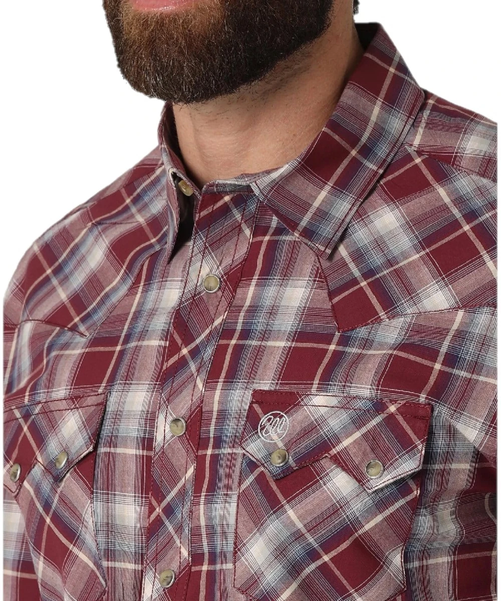 100% Cotton; Modern Slim Fit; Long Sleeve; Spread Collar; Snap Front Closure; Two Sawtooth Front Chest Flap Pockets With Double Snaps; Embroidery Logo On Left Chest Pocket; Two Single Point Front Yokes; One Double Point Yoke On Back; Color: Bourgogne; Style #112317117